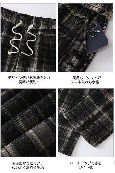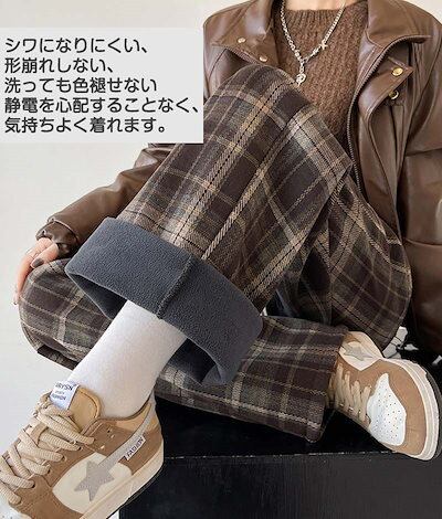 ストレートパンツ レディース ラシャ チェック ボア付き ハイウェスト パンツ 美脚 脚長 ストレート 体型カバー ボトムス ロング ボア 厚手 マキシ丈 ワイド ボトム 裏起毛 ワイドパンツ ロング