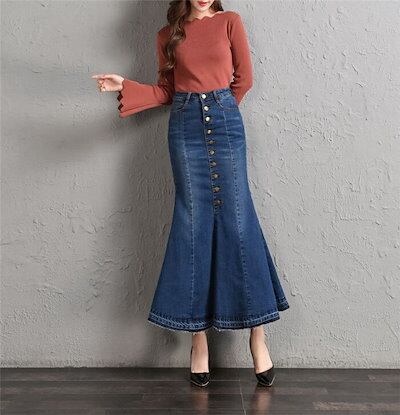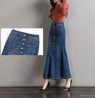 デニムスカート ボトムス スカート ロングスカート レディース デニム ロング丈 マキシ丈 マーメイドスカート マーメイド裾 シンプル おしゃれ春 夏 秋 冬 大きいサイズ お出かけ 無地 ハイウエス