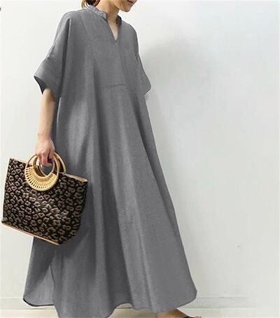 シャツワンピース レディース マキシワンピース 40代 きれいめ 半袖 ロングワンピ 無地 韓国風 ゆったり aライン 通勤 30代 50代 大人 バレンタイン 2025 プレゼント