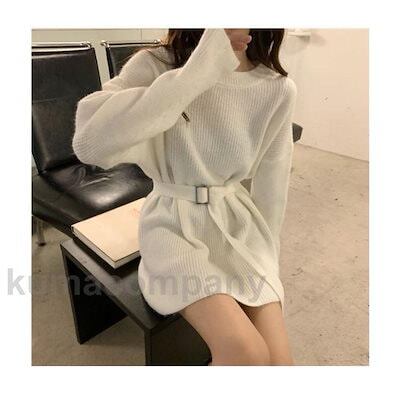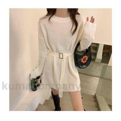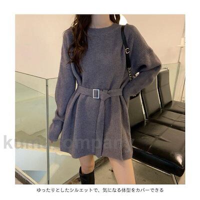 ワンピース レディース ニットワンピース 長袖 ショート丈 ミニワンピース 秋冬 クルーネック ゆったり シンプル フェミニン 綿混紡