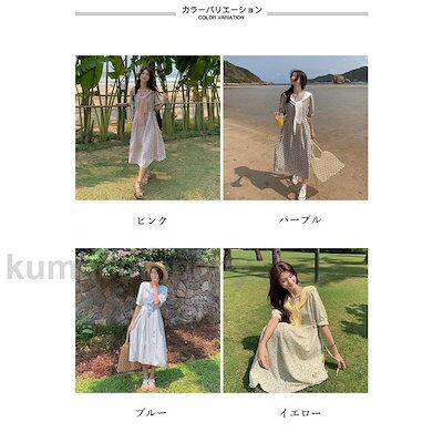 レディース ワンピース マキシ丈 マキシワンピース ロングワンピース 半袖 半袖ワンピース 花柄 丸襟 ゆったり 夏