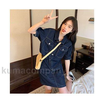 デニムワンピース 半袖 春 夏 レディース ワンピース ショート丈 デニム ショートワンピ ゆったり デニムシャツ シャツワンピース 半袖ワンピース