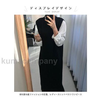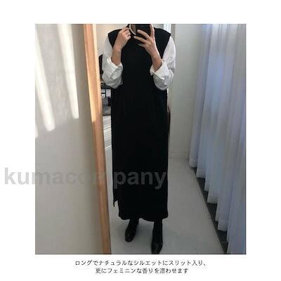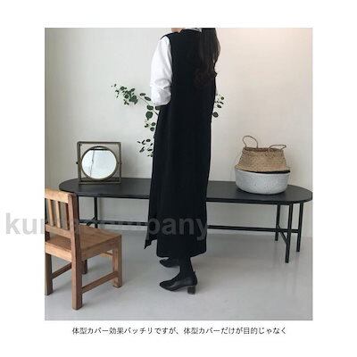 ニット ベストワンピ レディース ニットジレ ロングベスト ゆったり 体型カバー ニットワンピース ノースリーブ ロングワンピ ロングジレ