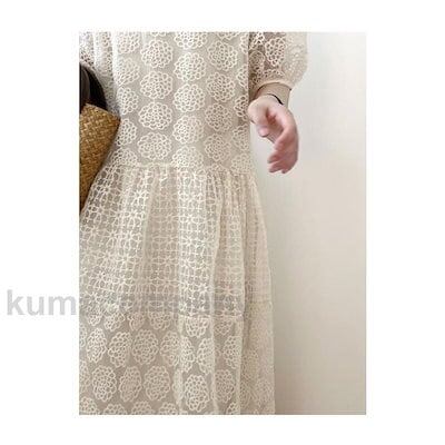 レースワンピース ロング 夏 レディース 半袖ワンピース 花柄レース ワンピース 森ガール 五分丈袖 レトロ ロングワンピ ゆったり ミモレ丈 プレゼント