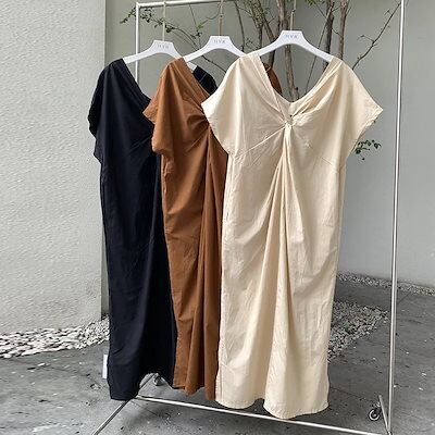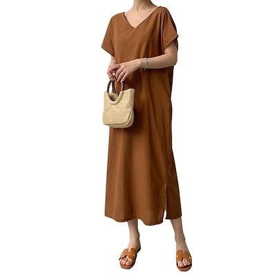 春夏 レディース キレイめ キャミワンピース ロング ゆったり シンプルポリエステルワンピース ゆったり半袖ロング シャツスカート 韓国ファッション ワンピース 無地 半袖ワンピース