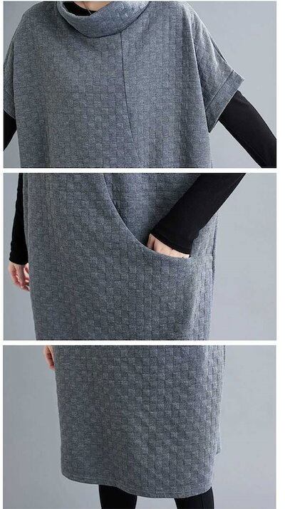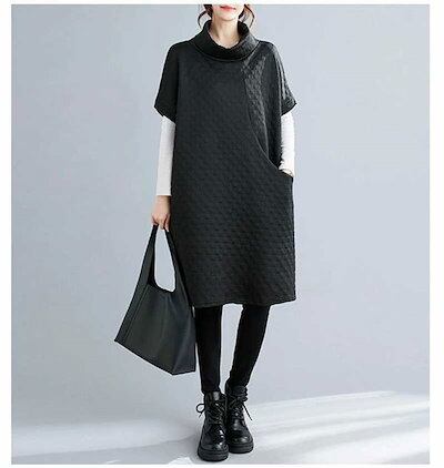 ワンピース レディース チュニック 秋冬 大きいサイズ チュニックワンピ タートル ハイネック ロングワンピース 暖か 無地 ハイネック 半袖 ポケット付き 重ね着 アウター 体型カバー ゆったり カ