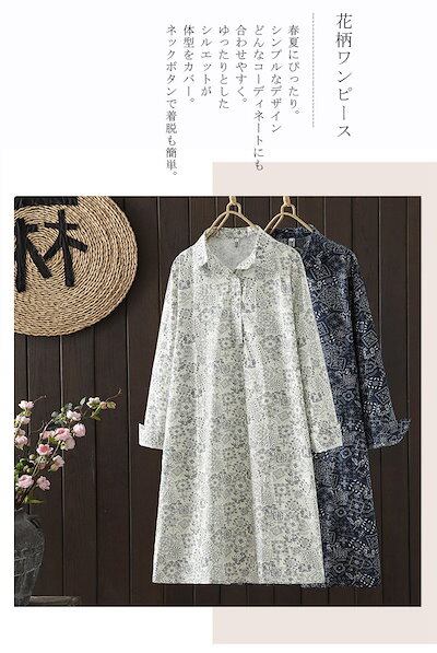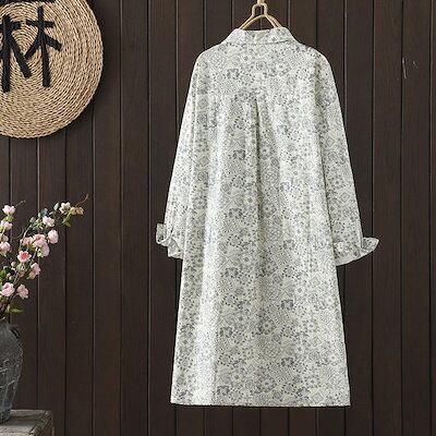シャツワンピース チュニック レディース 春秋トップス 夏 長袖 大きいサイズ ロングシャツ ワンピース 膝丈ワンピース 花柄ワンピース 総柄 かわいい 折襟 ゆったり 体型カバー 着痩せ シンプル