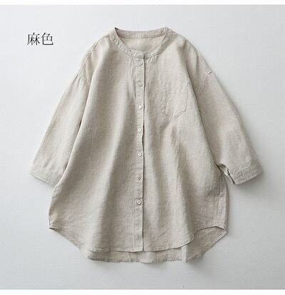 チュニック シャツ レディース 綿麻風 シャツブラウス 7分袖 前開き トップス 無地 羽織り チュニックシャツ ボタン タック ブラウス ゆったり 体型カバー カジュアル ロングシャツ きれいめ オ