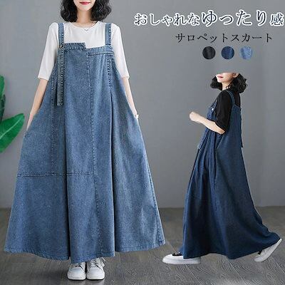 ジャンパースカート レディース デニム ワンピース サロペットスカート キャミワンピース 重ね着 ゆったり ワンピ ロングワンピース オールインワン ジャンパー サロペット スカート マキシ丈 オーバ