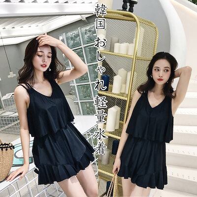 【2025新作】韓国ファッション オールインワン水着 Vネック 小胸 温泉 レディース 水着 夏 エレガント 高校生 ワンピース 体型カバー ラッシュガード