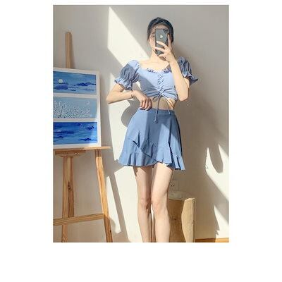 水着レディースセット 半袖+スカート腹部隠し スリム見え学生水着可愛い 温泉/海水浴 体型カバー