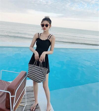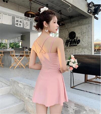 [cos衣料]水着 レディース 腹を覆う スリム 保守的 水着 韓国 温泉 セクシー 小さな胸 ギャザー みずぎ