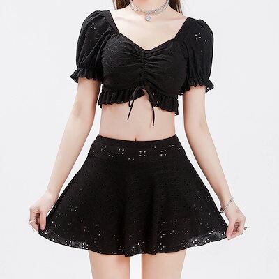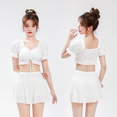 24 水着 レディース ワンピース体型カバー 2点セット ビーチ 無地 サーフパンツ リゾート水着 海パ