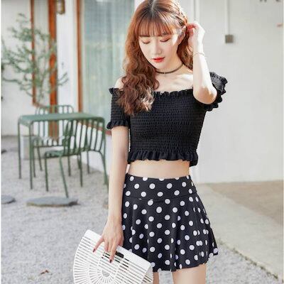 韓国 水着 レディース オフショルダー 体型カバー リゾート ビーチ 水着 ワンピース 2点セット セクシー バックシャン 学生 Y52