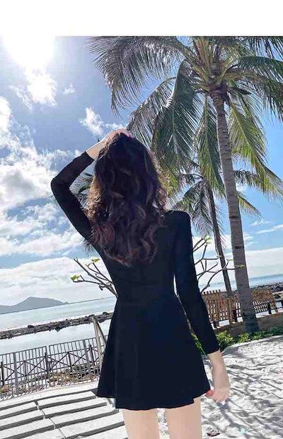 【新品】ワンピース水着 服みたいな 水着 長袖 無地 パッド付 レディース ラウンドネック シンプル セクシー 写真映え 撮影用 海 夏 サマー プール リゾート かわいい 旅行 温泉 大人 女性用