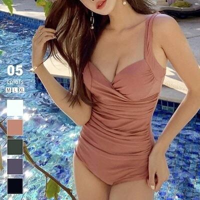 水着レディースワンピース体型カバーオールインワンモノキニセクシーレディース水着ワンピース水着ギャザー大きい大きいサイズ韓国風パッド付きオトナ女子リゾート可愛い韓国10代代30代40代50代