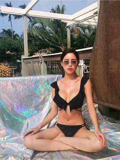 水着 レディース ビキニ スイムウェア トライアングルビキニ セパレート 紐 三角 フリル 胸元 谷間 谷間見せ 盛れる セット 上下セット