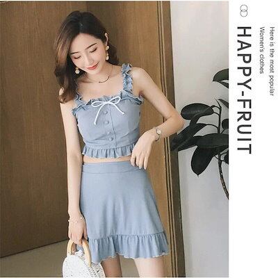 水着 レディース 体型カバー 水着3点セット フレアスカート 三角パンツ 小胸バンドゥビギニ 水着