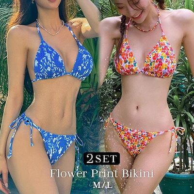 水着セット レディース 春 夏 春夏 ビキニ セット スイムウエア 花柄ビキニ ママ プール スポーツ 三角ビキニ ホルターネック ギャル