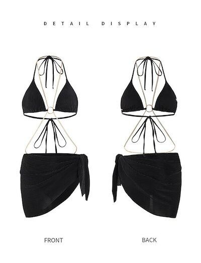三角ビキニ 水着 ホルターネック レースアップ水着 Tバック パレオ付き ワイヤーなし パッド付 セクシー レディース 体型カバー セパレート 海 プール リゾート かわいい 小胸 韓国ファッション