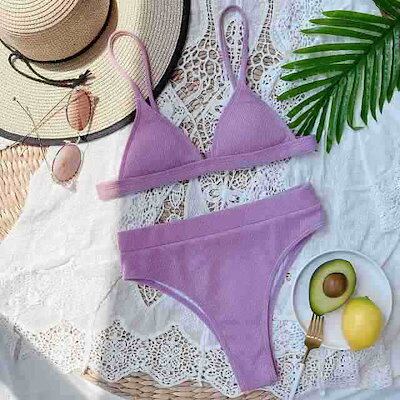 水着 レディース 水着 体型カバー 水着 三角 ビキニ パッド付き ハイウエスト プール 海 温泉 ママ セクシー フェミニン 無地 水20 水30 水着 エロい 韓国 着痩せ