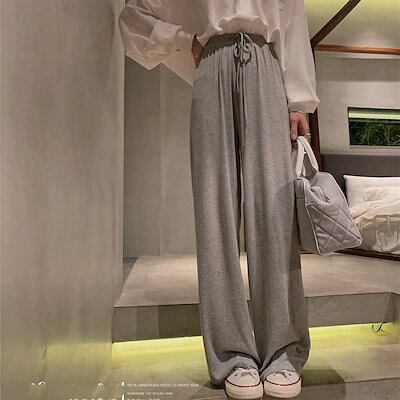 春 秋 夏 レディース 学生 百掛け ハイウエスト ロングズボン ドレープ感 ゆったり 着痩せ スラックス