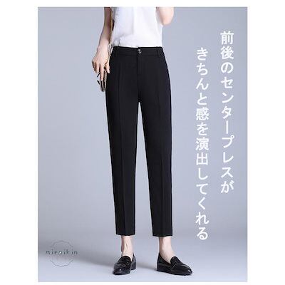 【新作セール】【即納 】パンツ テーパード センタープレス スラックス ストレート オフィス 丈短め 丈長め レディース ボトムス ズボン 九分丈 ロング丈 ハイウエスト ゴム