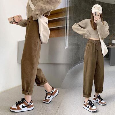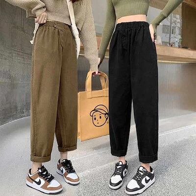 【迅速な出荷】テーパードパンツ レディース 春 チノパンツ 九分丈 サルエル カジュアルパンツ 無地 カジュアル ウエストゴム 美脚 きれいめ 着痩せ 春物 秋 ウ