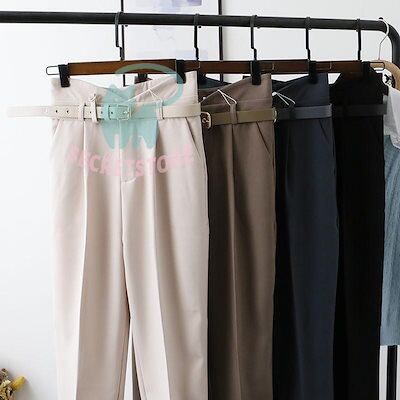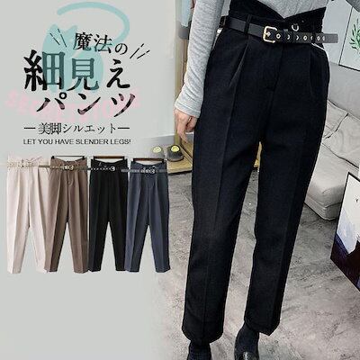 新品(タイムセール)テーパードパンツ パンツ レディース ボ ハイウエスト ベルト付き 体型カバー 楽ちん オフィス 就活 カジュアル 通勤 ズボン 無地