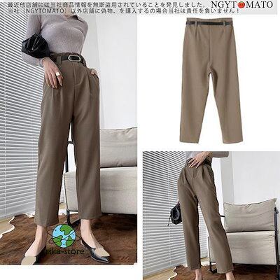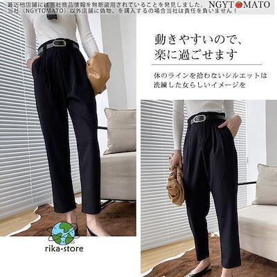 【デビュー】【大工場製造】ロングパンツ レディース テーパードパンツ 細身 オフィス 美脚パンツ きれいめ フォーマル ベルト 無地 ハイウエスト 9分丈 ボトムス 美脚 美尻 通勤 全3色
