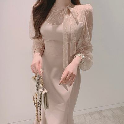 韓国chicの春のフレンチ 優しいワンピース セレブ レディース 長袖 ワンピース 通勤 OL ファッション 新品追加