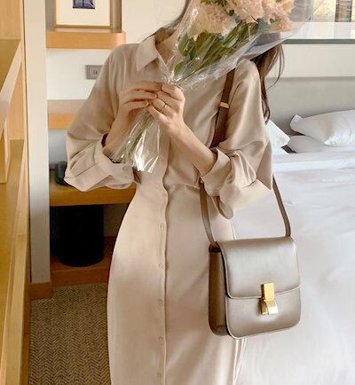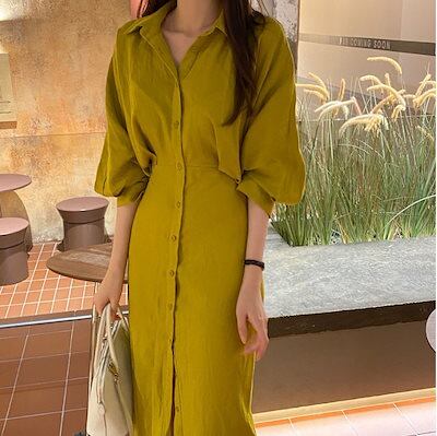 chic韓国春のフレンチシック ワンピースセレブ レディース 開襟シングル シャツ ワンピース 通勤 OL ファッション 新品追加
