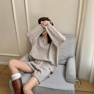 セットアップ 涼しく楽ちんセットアップ2025春の新作おしゃれニットセットアップ ニットスーツゆったりけだるい風セーターセット レディース Vネックニットトップス二点セット