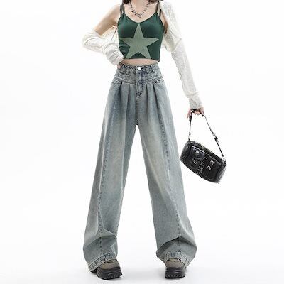 デニムかっこいい!スラックスパンツ2025春の新作ハイウエスト デニムパンツ レディース ワイドレッグ 見えやせ ハイウエストゆったり 垂れ感 おしゃれ