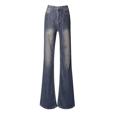 デニムかっこいい!スラックスパンツ2025春 マイクロラッパ デニムパンツ おしゃれレディース ワイドレッグモップパンツ アメリカンレトロ ハイウエストでゆったり 見えやせ 垂れ感