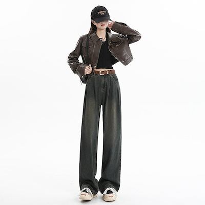 デニムかっこいい!スラックスパンツ2025春 しわだらけのワイドパンツ デニムパンツ おしゃれ ハイウエストゆったり見えやせ パンツ レディース