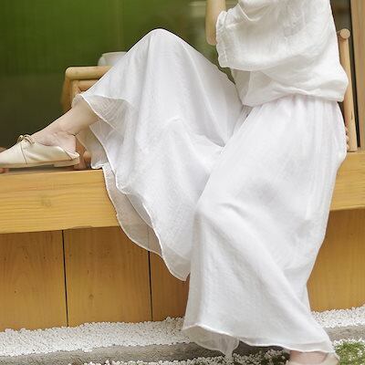 春 夏 ワイドパンツ ロングパンツ リネンパンツ レディースファッション
