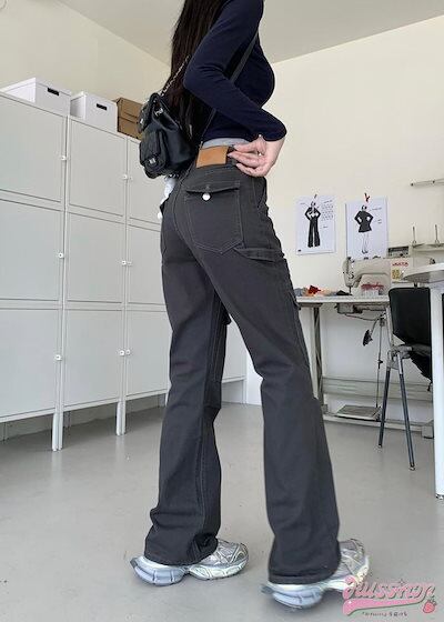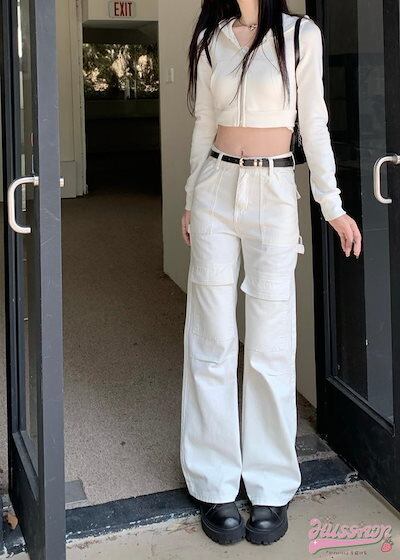 パンツ カーゴパンツ ワイド ストレート ハイウエスト 脚長効果 美脚効果 細見え 春 白 カジュアル 韓国ファッション レディース お出かけ