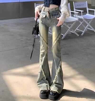 2024春夏 アメリカン パンツ デニム ブルー ジーンズ ロング丈 スキニー レッグ加工 ハイウエスト 脚長効果 美脚効果 細見え 秋 カジュアル 韓国ファッション お出かけ1