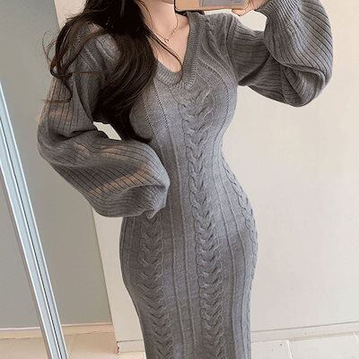 秋 冬 ニットワンピース 気質 アウター ツイスト ロングワンピース レディース セーター 通勤 シンプル 韓国ファッション
