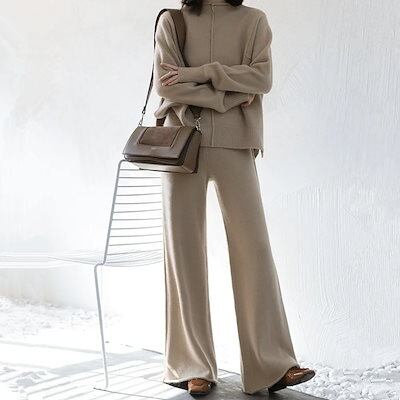 秋 冬 ニット セットアップ 気質 アウター 二点セット レディース セットアップ 上下セット セーター ワイドパンツ 通勤 シンプル 福袋