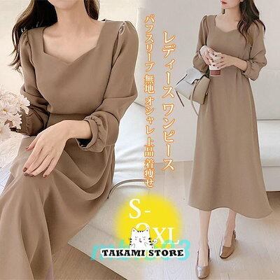 ロングワンピース レディース ワンピース スクエアネック きれいめ 長袖 春 秋 パフスリーブ