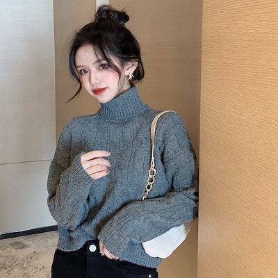 人気なリブニット 【2枚購入で2OO円 OFF!】ベーシックニット タートルネックセーター レディース百掛け ニットトップス 韓国ファッション裹起毛 長袖 ハイネックニットカシミヤタッチ