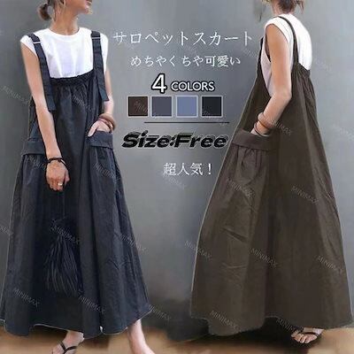 【品質良い】サロペット スカート オールインワン スカート めっちゃ可愛い レディース デニムワンピ ゆったり ロングワンピース
