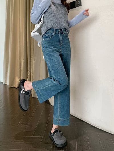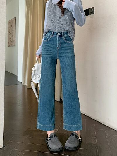 2025春夏 デニムパンツ ボトムス ハイウエスト ジーンズ K-POP ストリート系ファッション系韓国風ファッションウェア練習ジーンズ シルエット加工ゆったり レディースカジュアル型メンズライク衣装