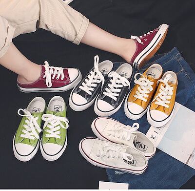 即納 かかとなし スニーカー レディースシューズ 靴 キャンバス サンダル スリッポン 軽量 軽い 歩きやすい ウォーキングシューズ 疲れない 痛くない カジュアルシューズ 学生 かわいい オシャレ