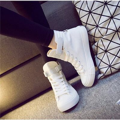 新しい スニーカー レディース ハイカット ローヒール カジュアルシューズ 厚底スニーカー 黒 白 スポーツシューズ 夏春秋 厚底 レースアップ キャンバス 編み上げ