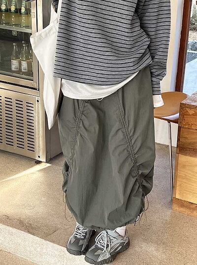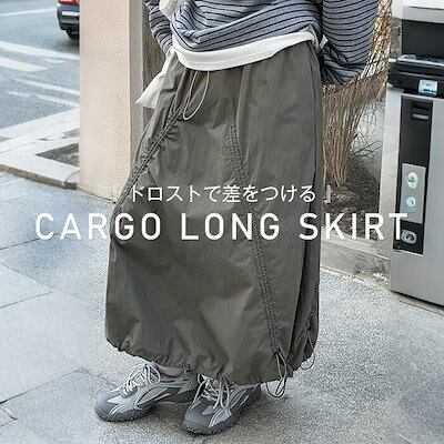 スカート ロング レディース ボトムス 2way ギャザー カーゴスカート ロングスカート バルーンスカート 大人 カジュアル きれいめ フェミニン ミリタリー ゆったり 体型カバー ワークスカート