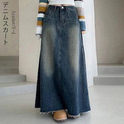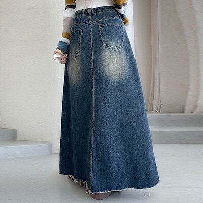 デニムスカートレディースデニムロングスカートスカート裾フリンジ膝下丈Aラインポケット体型カバーハイウエスト無地痩せ見えマキシ丈ゆったりL通勤オールシーズンビジネスセクシー森ガールカジュアルお出か