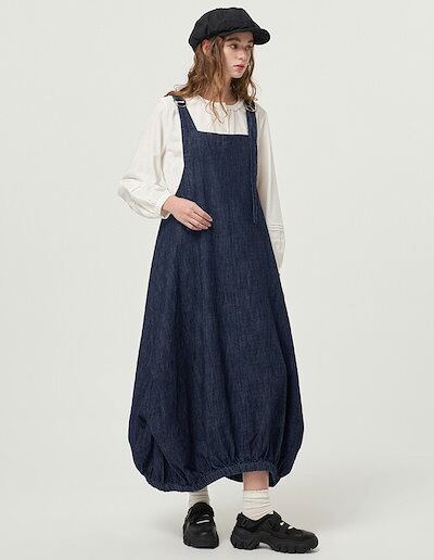 ジャンパースカート バルーンワンピース ジャンスカ レディース デニムワンピース オールインーワン ロング カジュアル ナチュラル 体型カバー ゆったり サロペット 重ね着 大きいサイズ